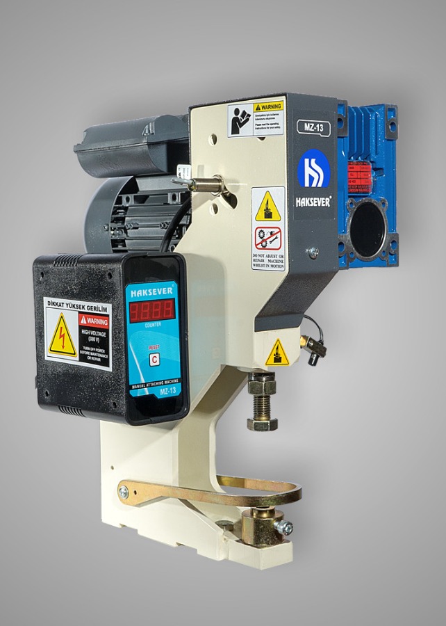 Motorlu Elle Çakma Makineleri Her çeşit düğme, kuşgözü, perçin ve benzeri tekstil aksesuarlarının çakımında kullanılabilir. » Çakma, delme ve markalama işlemlerinde kullanılabilir. » Kullanılan malzeme ve kalıba göre saatte 2.500-3.000 adet çakım yapabilir. » Ekonomik güç sarfiyatı ile ekonomiktir » Sessiz çalışır, ergonomik tasarımı sayesinde yerden tasarruf sağlar. Lazer nokta işaretleyici » Akıllı parmak koruma sistemi » Dijital sayaç » Düğme, kuşgözü, perçin ve diğer metal aksesuarların çakımında kullanılır » Çakma, delme ve markalama işlerinde kullanılır » Saatte 2.000 – 4.000 adet çakma yapılabilir » Sessiz ve ergonomik tasarıma sahiptir » Güç tasarrufu sağlar » Dayanıklı ve kolay kullanımlıdır. |