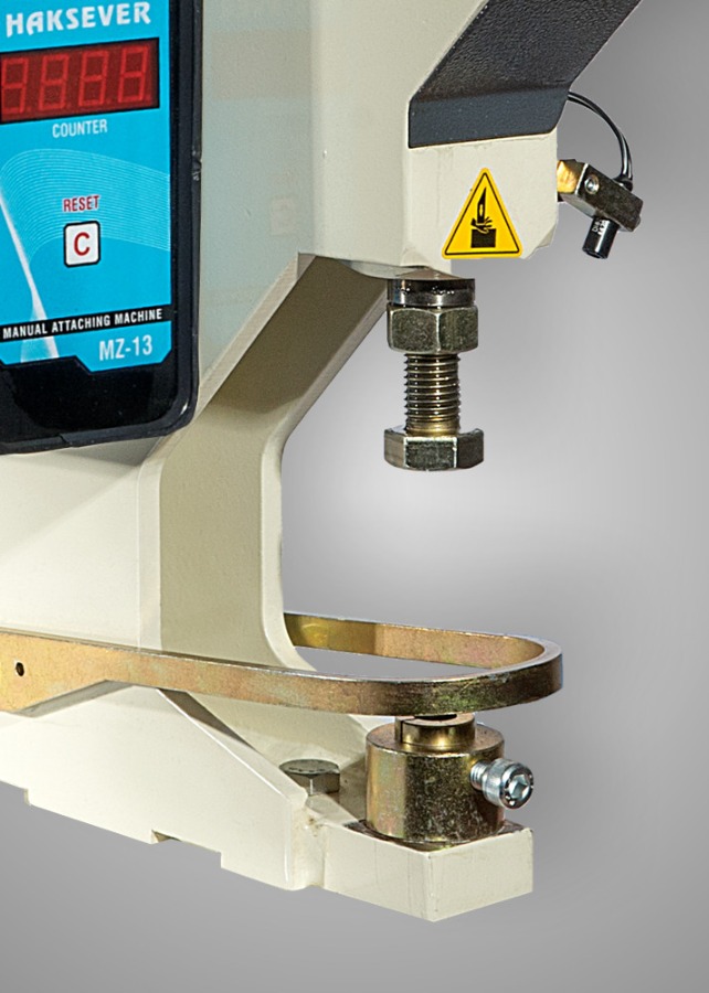 Lazer nokta işaretleyici » Akıllı parmak koruma sistemi » Dijital sayaç » Düğme, kuşgözü, perçin ve diğer metal aksesuarların çakımında kullanılır » Ayarlanabilir darbe gücü » Çakma, delme ve markalama işlerinde kullanılır » Saatte 2.000 – 4.000 adet çakma yapılabilir.